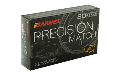 With the introduction of the most accurate commercially loaded round on the planet, Barnes enters the world of match ammunition in 2015 with Precision Match. As a proud supplier of precision ammunition to America’s Military Elite, Barnes makes top tier ammunition commercially available for the elite, technical shooter who demands uncompromising performance. Precision Match Ammunition delivers exceptionally accurate, long range allowing the shooter to SEND IT WITH CONFIDENCE every time. Precision Match, engineered for precision at extreme distances, features exceptionally low standard deviations and extreme variations due to Barnes’ exacting manufacturing and quality standards. Precision Match rounds are loaded with a match grade OTM (Open Tip Match) BT projectile featuring a long boat tail and high B.C. As an additional bonus, scan the QR code located on the back of each box to view Doppler radar generated drop tables specific to each load. Precision Match will be offered in 5.56 X 45MM 69 grain OTM BT, 5.56 X 45MM 85 grain OTM BT, 6.5 Creedmoor 140 grain OTM BT, 308 Win 175 grain OTM BT, 300 Win Mag 220 grain OTM BT, and 338 Lapua Mag 300 grain OTM BT.