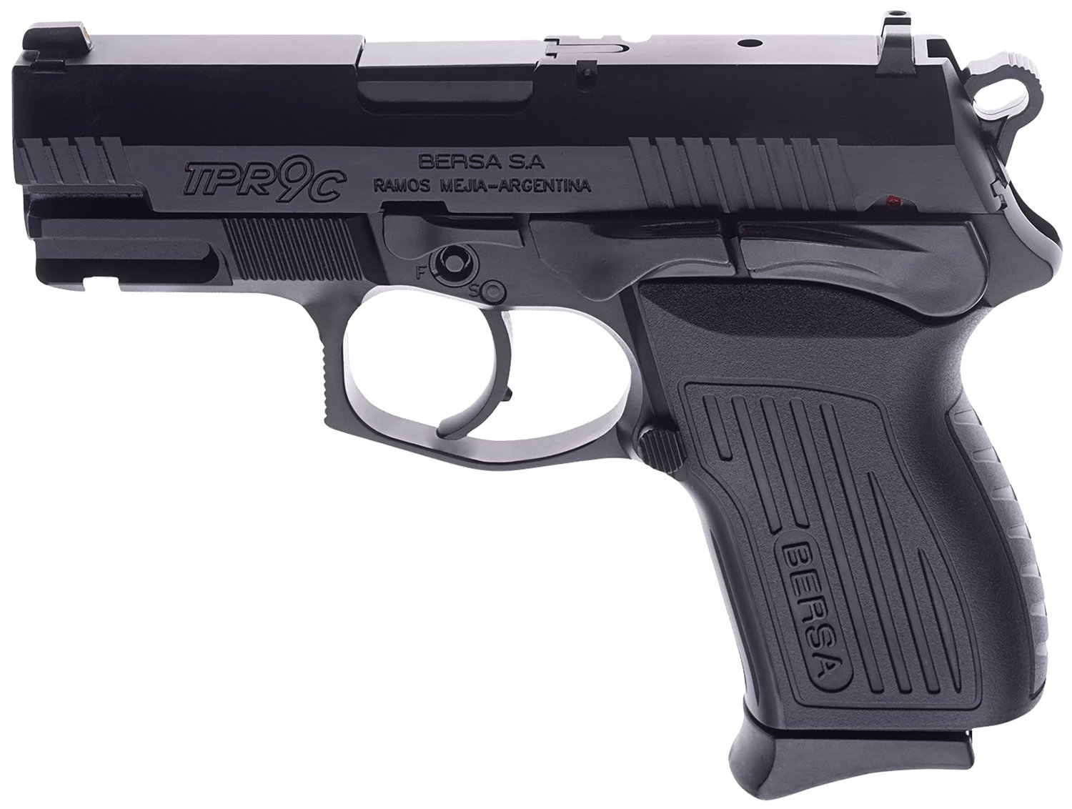 Bersa TPR9CM TPRC Compact Frame 9mm Luger 13+1, 3.25″ Black Manual Barrel, Matte Black Serrated Steel Slide & Aluminum Frame, Ambidextrous