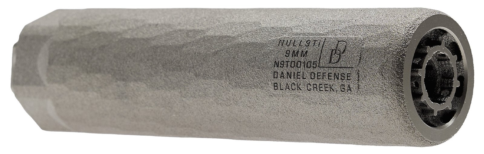 The NULL9Ti is engineered for pistol-caliber carbines and fast-shooting platforms where blowback and gas management matter as much as sound reduction. Its high-flow architecture minimizes back pressure while reducing user exposure to toxic gases and particulate matter delivering a cleaner and more controlled shooting experience. – Built using a weldless fully 3D-printed titanium design the NULL9Ti achieves exceptional strength and durability at just 4.4 ounces. Independent testing shows it to be over 75 percent quieter than a bare muzzle under controlled conditions. Mini-HUB compatibility allows seamless integration into existing setups while Daniel Defense manufacturing standards and a lifetime warranty ensure long-term reliability. – KEY FEATURES – Optimized for PCCs and fast-shooting platforms – High-flow design minimizes blowback – Reduces user exposure to toxic gases and particulate – Weldless fully 3D-printed titanium construction – Ships with direct-thread Mini-HUB mount – No barrel length restrictions for 9mm or 300BLK with Subsonic Ammunition – Minimum 7-inch barrel for 300 BLK with Supersonic Ammunition – Rapid-fire rated up to 300BLK subsonic; semi-auto rated up to 300BLK supersonic – Backed by Daniel Defense Lifetime Warranty – Specifications – Attachment Mini-HUB – Length 5.08 – Weight 4.4 oz – Diameter 1.41 – Compatibility 9mm and up to .300 BLK subsonic – Finish Type II Anodize Clear