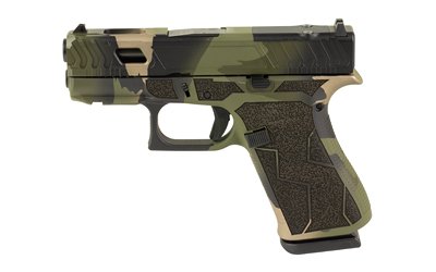 Chambered in 9mm Luger the G43X features a compact Slimline frame with a black slide. The 10-round magazine capacity makes it ideal for concealed carry. Designed for comfort, The G43X combines a compact-size grip length, a built-in beaver tail and a subcompact-slim slide for a comfortably balanced, versatile grip that’s ideal for a variety of users. This model features a custom Camo Cerakote finish by Shark Coast Tactical.