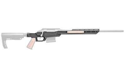 The Sharps Heatseeker is an innovative, affordable chassis system for your bolt action rifle, allowing you to easily upgrade a traditional factory rifle stock for improved versatility and a sleek, modern appearance. This 1lb, 3 ounce chassis is machined from billet high-strength 6061-T6 aluminum and includes a 10 ounce, 14″ handguard cut from a unique extrusion shape exclusive to Sharps Bros. Both the chassis body and the handguard are finished in a matte black Cerakote. The handguard features M-LOK slots on 4 sides for various attachment options and two quick disconnect fittings per side for sling attachment. Add your pistol grip and stock of choice with the Heatseeker’s standard AR-15 grip and AR buffer interface. This offering is for the Ruger American Short Action (calibers: 308 WIN, 6.5 Creedmoor). With the Heatseeker you can easily and affordably convert your Ruger American short action into an enhanced magazine fed system. The Heatseeker’s sleek contemporary design will completely transform the look of your rifle, with no need to visit a gunsmith: simplified instructions and functionality make installation a breeze. This Heatseeker model for the Ruger American is compatible with AICS short action magazines from Magpul and Accuracy International.