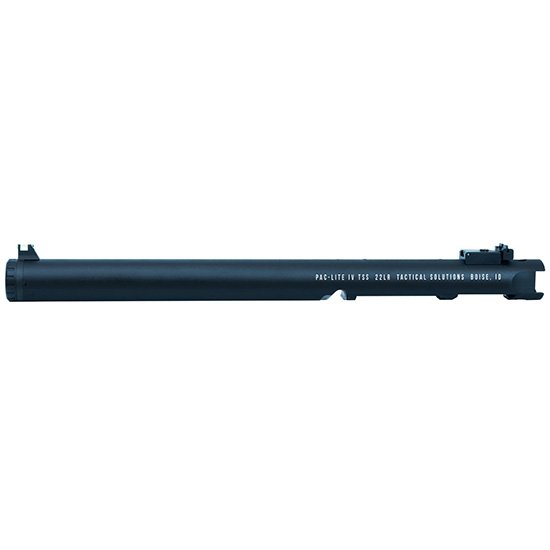 The Tactical Solutions PAC-LITE IV® TSS is the only integrally suppressed upper available for the Ruger® Mark IV and Mark IV 22/45 and includes a patent pending muzzle-end front sight system. At only 12 ounces this lightweight accurate integrally suppressed .22 LR pistol barrel features titanium interlocking baffles and a patented stainless steel split tube for easy service and cleaning. The barrel is engineered and manufactured with an internal silencer built into the barrel which allows the pistol barrel length to remain manageable and short compared to traditional barrels with screw-on silencers attached. The PAC-LITE IV TSS is easily installed on your Ruger pistol. – The only complete integrally suppressed Mark IV Upper/Barrel available! – Patent pending sight system! – Muzzle-end fiber optic front sight! – Patented easy removal of suppressor baffles for easy cleaning! – Lightweight for quick and easy target acquisition! – Highly accurate! – Quick and easy to install! – Specs: – Weight: 12 oz – Twist: 1-16 – Bore Length: 3.50 Inches [ 12.75 OVERALL ] – Green Fiber Optic Front Sight