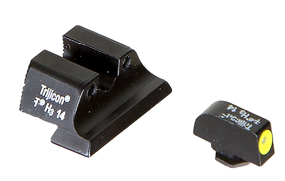 The HD Night Sights were specifically created to address the needs of tactical shooters. The three dot green tritium night sight sets front sight features a taller blade and an aiming point ringed in photoluminescent paint while the rear sight is outlined in black and features a wider U-shaped notch. This unique configuration increases visibility and quickens front sight acquisition even in transitional lighting. Additionally, the front surface of the rear sight is steeply hooked to assist in emergency one-handed slide operation. Green tritium lamps are warranted for 12 years from date of manufacture. Professional installation recommended. Front Sight Width: 0.144″. Front Sight Height: 0.268″. Rear Sight Height: 0.291″.
