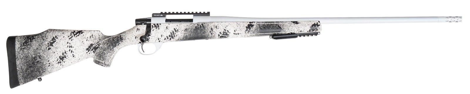 The Weatherby Vanguard sets the standard for accuracy with its SUB-MOA guarantee. Its cold hammer-forged Cerakoted barrel and match-grade trigger deliver consistent precise performance. The threaded barrel is ready for your favorite suppressor or the included muzzle brake giving you flexibility right out of the box. – The Bill Hicks Exclusive ARCTIC PRO edition comes equipped with premium Peak 44 accessories to enhance your hunting and shooting experience. It features an optics-ready 20 MOA Picatinny Rail on the action and an Arca/Pic rail on the stock’s foreend providing versatile mounting options for multiple attachments. – Face the elements with confidence. The ARTIC PRO’s weather-resistant synthetic stock is built to endure the toughest conditions ensuring flawless performance rain or shine. Its ergonomic Monte Carlo design offers a comfortable secure grip promoting better handling and accuracy. It is finished with a hand-painted sponge paint done by our team in Sheridan Wy. – Available in a range of calibers the Vanguard Black Hills offers versatility for various shooting scenarios. Whether you’re on the range or in the field choose the caliber that best suits your needs. – FINISH – Barrel/Receiver/Trigger Guard- Hidden White Cerakote – Stock- Polymer Monte Carlo synthetic stock with Arctic Camo Spong Paint