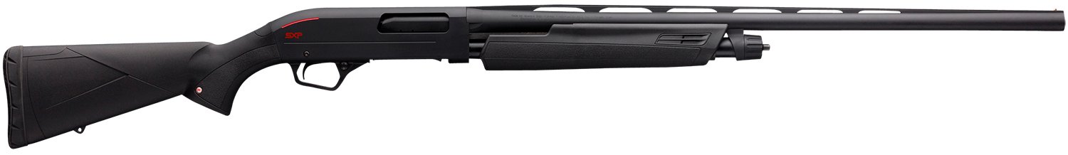 Pick up the Winchester Super X Pump (SXP) shotgun and experience the light weight, centered balance and instant pointability firsthand. The Super X design provides you with the fastest follow-up shots. No other pump offers the feeling of an inertia-assisted slide-action that can deliver three shots in a half second. Whether its super-speed clays or fast-flushing upland game, keep up with shootings fastest action with the Super X Pump, the perfect choice for pump shotgun lovers.